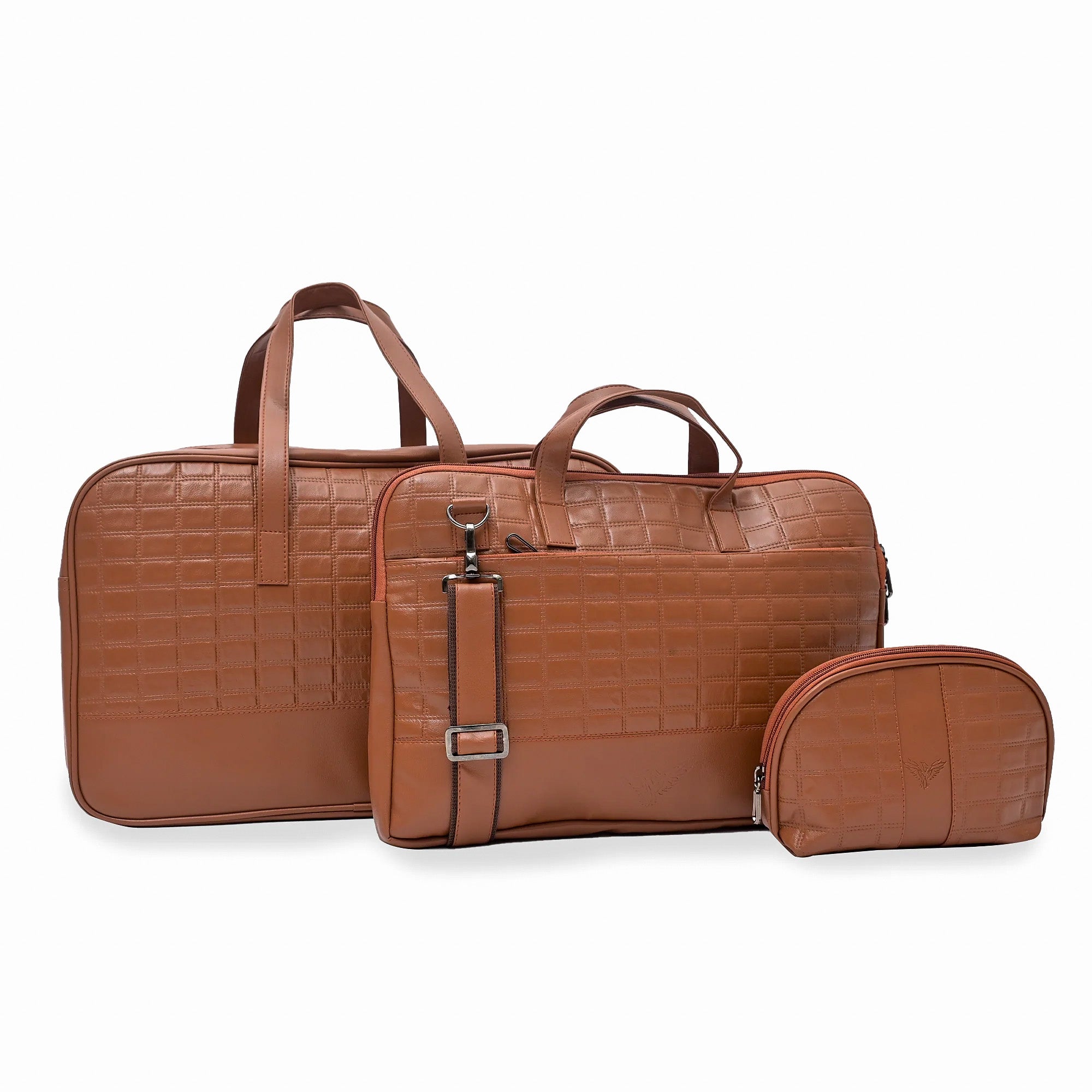 | The Apex 3-in-1 Combo Set includes a duffle bag, file bag, and vanity pouch. |