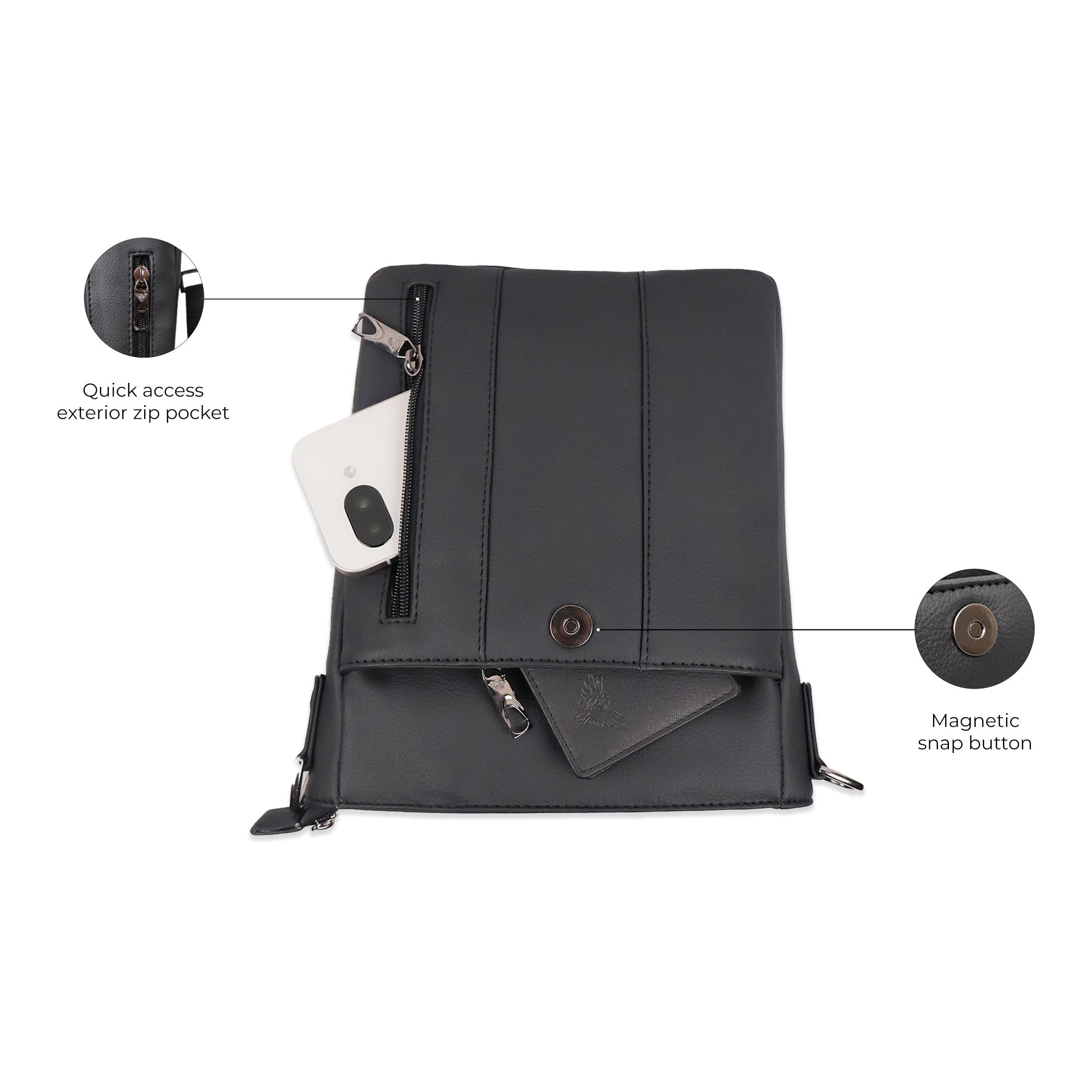 | Interior Zip and slip pockets |